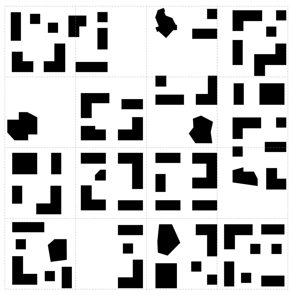 Der studentische Ideenwettbewerb für die HOWOGE Berlin forderte eine Blaupause für den Berliner Stadtrand. Die an die 4×4 Quadrate anschließende Umgebung wurde nur typologisch festgelegt, um fiktive Ränder zu kreieren, sodass sozial, wie funktional, durchmischte Quartiere entstehen. Die wachsende Stadt wird als Schnittstelle zwischen Stadt und Umland, urbanen, lebendigem und nachhaltigen Wohnen mit Zukunftsperspektive vorangedacht.